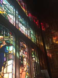 The final glassy day was spent with Jacque Pavlosky and Marilia Carvalho fellow artists in the Askett Glass Studio group. We first visited and scrutinised the exquisitely painted windows, Sunrise and Sunset, made by Clayton and Bell for 2 Temple Place c1895, where there is also a more traditional leaded roof light shown in the header above. Our walk to Glaziers Hall took us along the Thames Embankment and past the new wonders of London’s architecture on Blackfriars, Southwark and London Bridges – notable for the extensive use of reflective glass. Our day was rounded off by Professor Sarah Brown’s lecture on the East Window of York Minster – better to read her new book than I try to convey it all here.